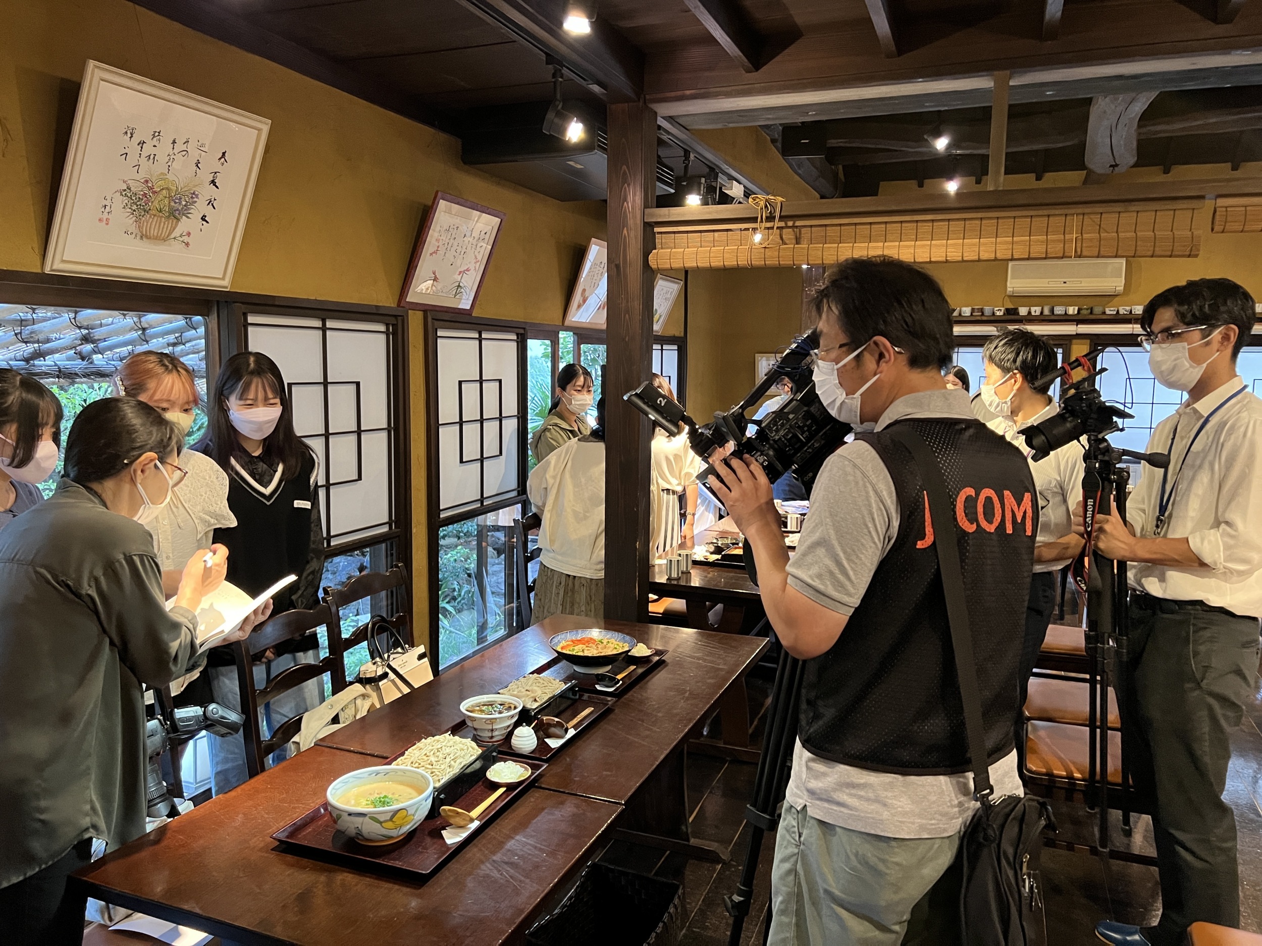 和洋女子大チームと服部市長をお招きして試食会を開催しました。それぞれのレシピが美味しいと大好評でした。多数メディアの取材をうける初々しい姿が印象的な試食会となりました。 |