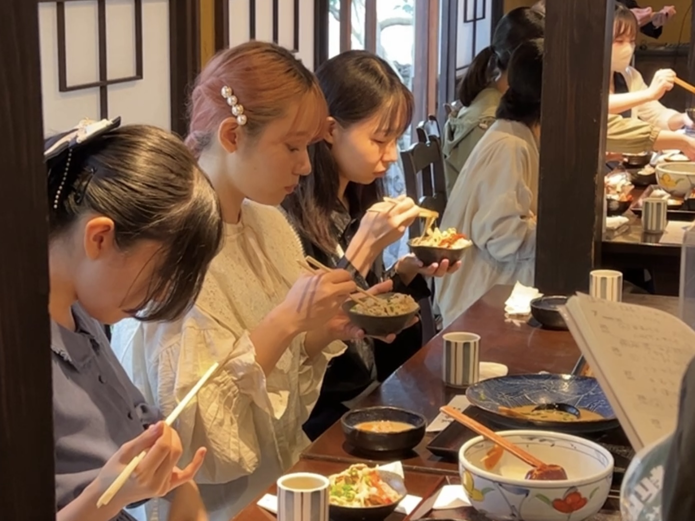 野菜に加えて海鮮も入っているヘルシーだけど満足感のあるそばの香りが楽しめる1杯です。